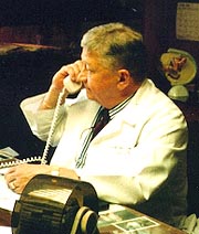 Sneaking people and things into hospitals seems to have became a habit for Dad. I can remember when he snuck Jeannie and I in to see Mom and Danny when Danny was born. Later he would take us on Sunday morning rounds and we would talk to the nurses and hold the babies while he checked in with patients. Then there was the time he snuck a fawn into the hospital to have it's leg x-rayed. One of our horses had stepped on it. And well, you just had to fix it right (even if he was a hunter)?